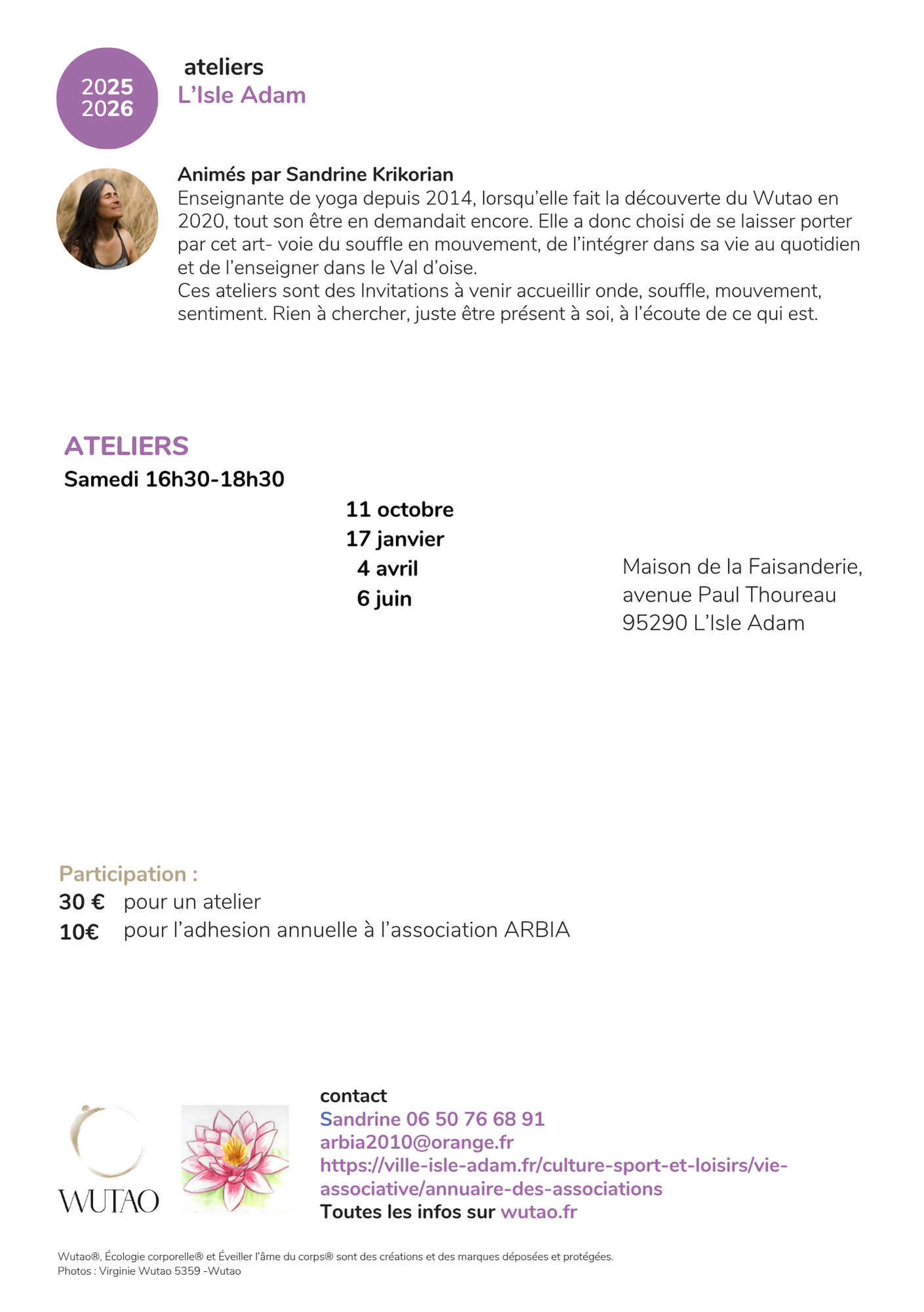 ARBIA vous invite à participer à un atelier de WU TAO