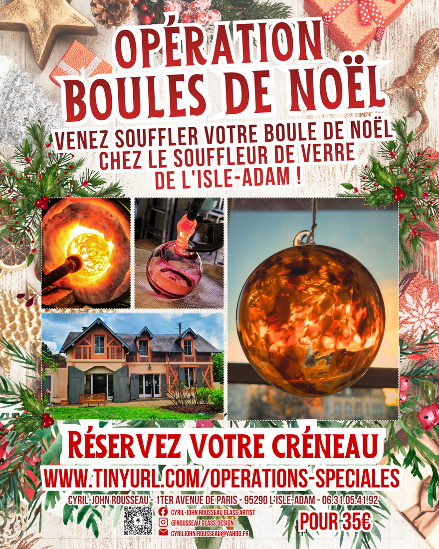 Venez réaliser votre boule de Noël en verre soufflé avec le souffleur de verre de l'Isle-Adam !