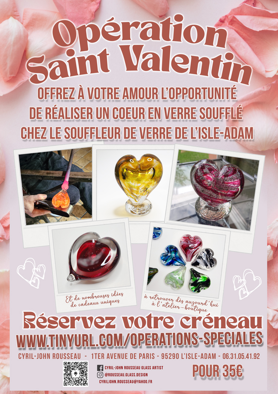 âš Comme chaque annĂ©e, lâatelier vous propose une expĂ©rience aussi romantique quâenvoĂ»tante : la crĂ©ation de cĆurs en verre soufflĂ©, personnalisĂ©s et uniques.